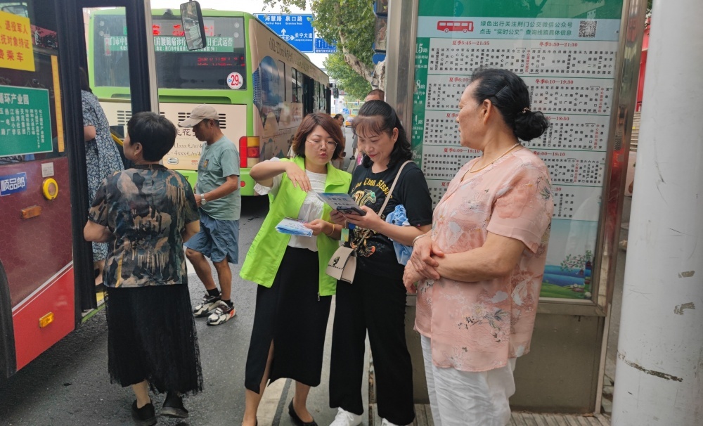 公交志愿者通過咨詢解答和發(fā)放綠色出行宣傳冊,向市民講解“實時公交”、移動支付方法,并邀請市民對公交服務質(zhì)量進行評議,廣泛征求市民的意見與建議。