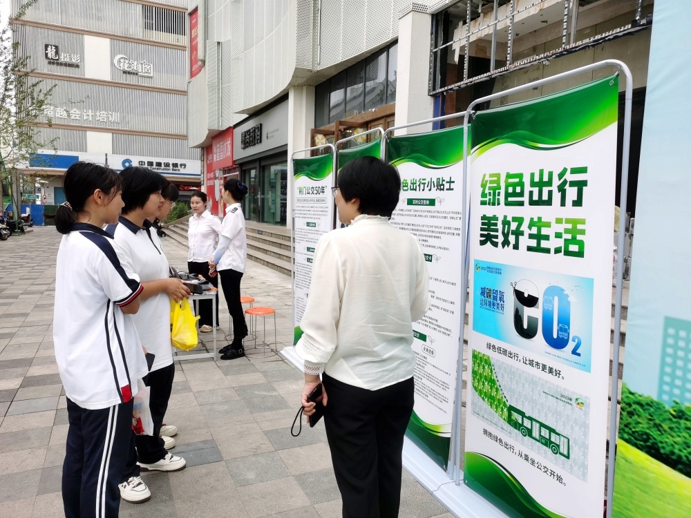 “綠色出行 美好生活”主題宣傳背景墻和公交出行宣展板,展示了荊門公交企業(yè)文化、便民舉措、綠色發(fā)展、服務提質(zhì)等內(nèi)容,引導廣大市民了解和支持公共交通發(fā)展。