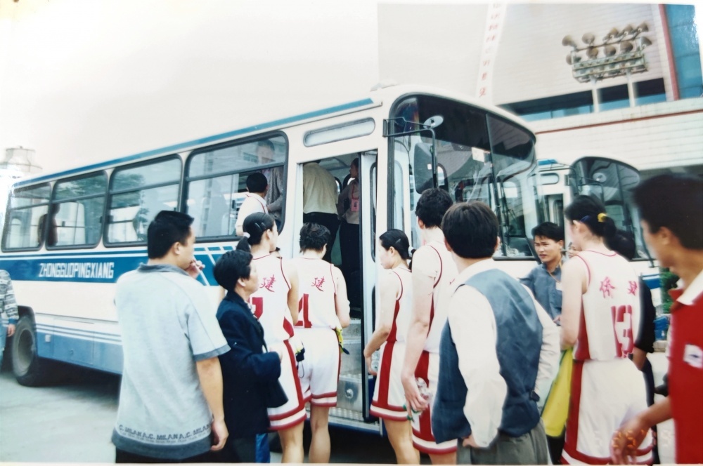 ▲1999年5月25日,沈陽(yáng)電梯隊(duì)在公交車旁合影留戀。從“中國(guó)籃球大事記”查閱到,1999年全國(guó)女子籃球甲級(jí)聯(lián)賽,沈陽(yáng)電梯隊(duì)奪得了當(dāng)年聯(lián)賽冠軍。