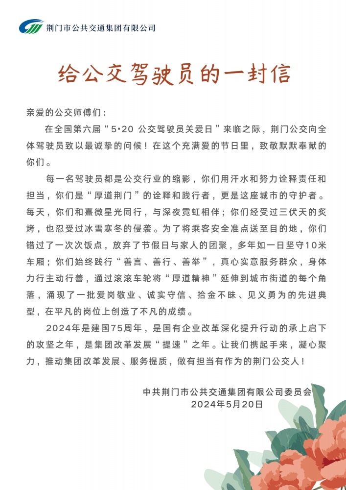 為倡導社會關愛公交駕駛員,營造理解、尊重公交駕駛員的良好氛圍,5月20日,市公交集團以“全國公交駕駛員關愛日”為契機,通過一系列關愛駕駛員的活動,為公交駕駛員們送上節(jié)日祝福和關愛。