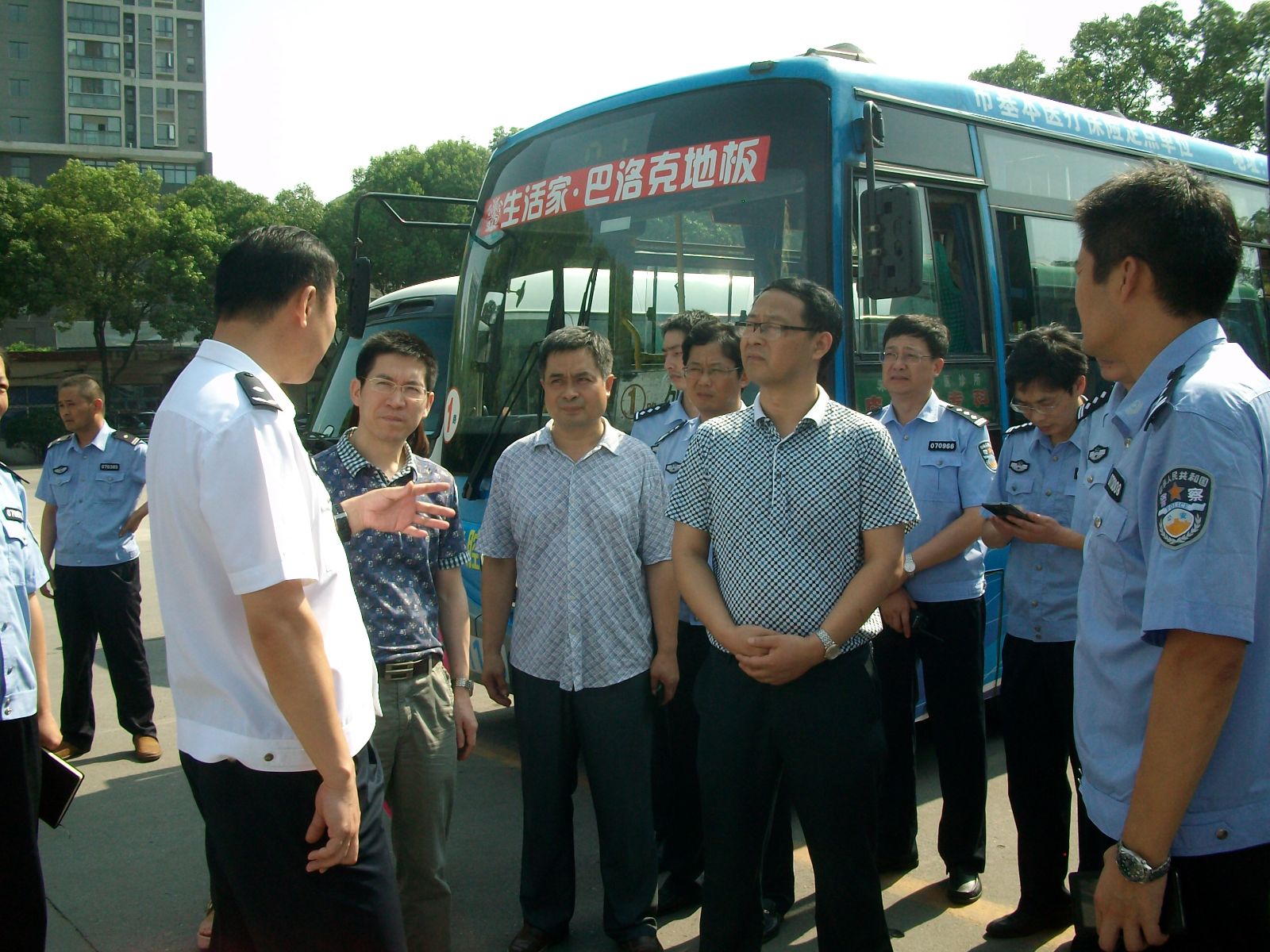 7月21日,副市長、市公安局局長朱高文帶領(lǐng)市公安局副局長王文忠、治安支隊支隊長吳斌鵬、交警支隊支隊長陽勇一行深入公交公司、公交站臺,檢查督導(dǎo)集團公司公交安全工作。