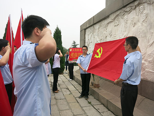 登山比賽結(jié)束,集團(tuán)公司黨委組織全體黨員在烈士陵園的革命烈士紀(jì)念碑下肅立,舉行莊重的入黨宣誓。在齊唱《中華人民共和國國歌》之后,今年剛轉(zhuǎn)正的黨員周小艷、孟津平、劉斌、何俊、董丁奧5名同志,以及王雄峰、江志剛、陳荊梅3名預(yù)備黨員,舉行了入黨宣誓。隨后新黨員代表王雄峰同志代表全體黨員發(fā)言。接著,公司黨委副書記、紀(jì)檢書記文勁同志代表黨委致辭。最后,公司黨委書記龐守江為本次慶七.一登山比賽獲得名次的同志頒發(fā)了獎(jiǎng)品,并要求全體黨員要牢記入黨誓詞,踐行黨員義務(wù),以黨員的標(biāo)準(zhǔn)嚴(yán)格要求自己,充分發(fā)揮黨員的先鋒模范作用, 為實(shí)現(xiàn)荊門公交跨越發(fā)展和中華民族的偉大復(fù)興貢獻(xiàn)自己的力量,無愧于中國共產(chǎn)黨員的光榮稱號(hào)!